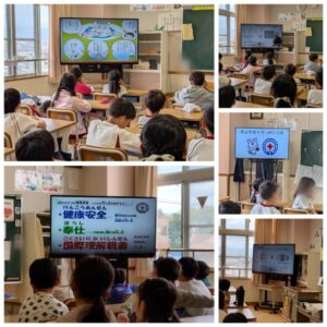 大正11年(1922年)守山小学校の前身である守山尋常高等小学校に、わが国初の少年赤十字団が結成されました。その歴史と伝統を受けつぐ本校は、青少年赤十字(JRC)の発祥校です。