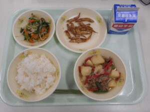 今日は学校給食週間2日目で、アメリカの献立です。ハワイ州カウアイ島は、えびの養殖が盛んで、えびの料理がよく食べられています。今日の「ガーリックシュリンプ」は、えびににんにくの香りをつけた料理です。ハワイでとても人気があります。 コーンチャウダーは、アメリカで広く食べられている料理で、ベーコンや野菜など具材が豊富で食べ応えがあり、体が温まるごちそうとして親しまれています。給食を通して、世界の食文化を知り、おいしくいただきましょう。