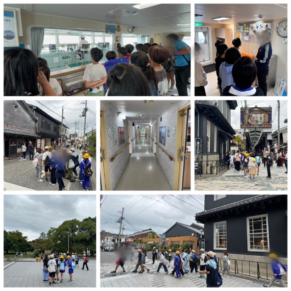 船内を見学しました。2日間お世話になる学習船うみのこの設備などについて学びました。普段入れない操舵室の見学も行いました。普段見慣れないものばかりということもあり、興味津々の子どもたちでした。