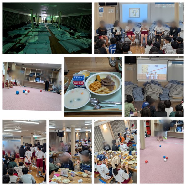 夕べのつどいが始まりました。まずは、学校紹介がありました。両校の紹介を、動画やクイズで表現し、とても楽しく分かりやすく、両校の交流ができました。そして、班対抗ボッチャ大会です。ボッチャは、室内ででき、ルールも簡単なので、誰でも簡単にすることができます。ボールを投げる加減が少し難しいのですが、グループで作戦を考えながら楽しく活動することができました。