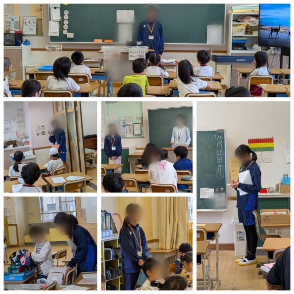 本日より5日間、県立守山中学校の2年生の生徒たちが職場体験ということで各学年のいくつかの学級に入り、教師の仕事を体験します。授業をすることはありませんが、子どもたちの支援や教員の手伝いなどをして、教師の仕事について学びます。初日から、「○○先生」って子どもたちから言われ、戸惑っている姿もありましたが、早速休み時間は子どもたちと遊ぶ姿も見られ、楽しく過ごしている姿が見られました。