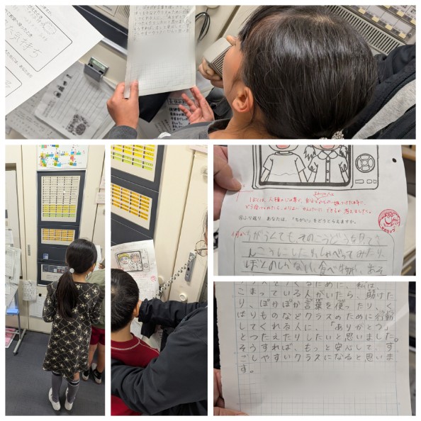 今日は、3年生の発表がありました。先日行われた人権にかかわる参観で学習したことを振り返っての内容でした。外国の方と出会ったときには違いを認めながらよりよい関係になれるように考えて行動したいということや、みんなで楽しく過ごすために友だちとどのような関係を作っていくべきなのか、友だちを励ます言葉をかけることにより協力が生まれたことなど、子どもたちが感じたことを分かりやすく発表することができました。