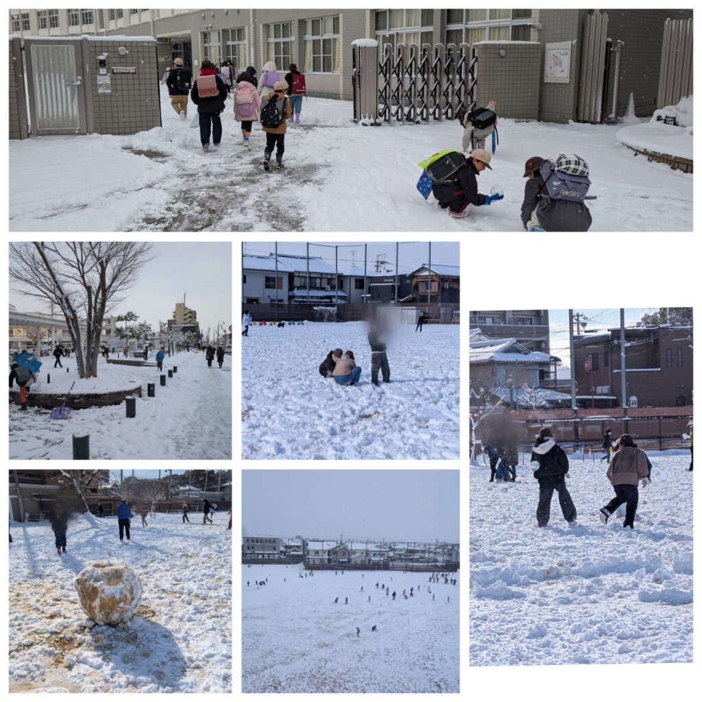 今日は昨晩から降った雪が各所に積もり、学校は真っ白な雪景色の朝となりました。