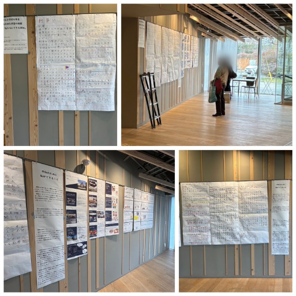 さらに、今回は学習したことを市民の皆さんにも知ってもらおうと、市立図書館の展示コーナーに各クラスの代表作品を掲示させていただきました。図書館を訪れる方々にしっかりと見ていただき、子どもたちの学びを広げることができました。
