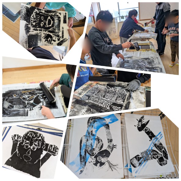 多くの学年は、刷るところまで終了し、作品が完成しています。今後は全クラス廊下や教室等に掲示される予定です。