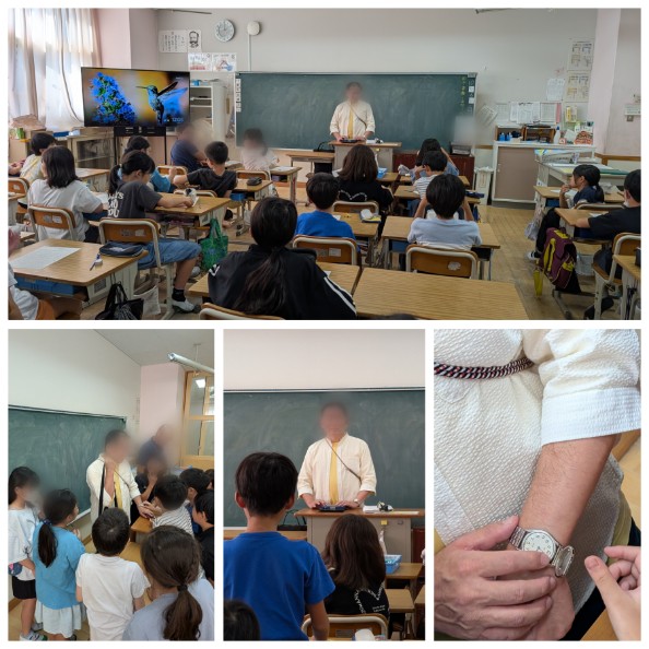4年生の「守山や続しさたんけんたい」では、ゴールボールでお世話になった西村さんに再度来校いただき、視覚障害者の立場から子どもたちにいろいろなお話をしていただきました。また、子どもたちから出てきた、たくさんの質問にも丁寧に答えていただきました。服はどうやって選んでいるの?スマホはどのように操作しているの?車の運転はできるの?・・・視覚障害者の方々の生活や考えなどは、子どもたちにはなかなか想像もつきません。実際に生の声を聞いた子どもたちは、もっと知りたい、自分たちも何かしたいと考えるのは必然です。そういった子どもたちの思いをこれからも大切にしながら、学習を進めていきたいと思います。西村さん、ありがとうございました。
