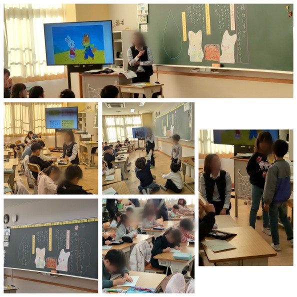 2年生の道徳科「くりのみ」では、「親切にするとどんないいことがあるのか。」について考えました。くりの実を見つけて独り占めしようとうそをつくキツネと、2つしかないくりの実を一つキツネにあげるウサギの気持ちを考えることで、思いやりをもって行動することは、自分も相手も気持ちよくなることを気づくことができました。最後に流すキツネの涙の意味を考えるときに、「うそをついた後悔の涙」だけでなく、「優しくしてもらえたうれしい涙」もあることを考え、自分の生活につなげていこうという意見がたくさん出てきました。